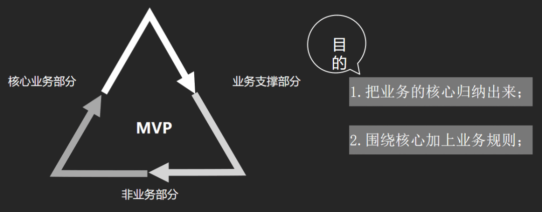对于业务规则来说,为了方便对规则的新增、变更与废弃进行跟踪管理,需做版本控制。以贷超产品MVP设计为例,我们会将业务分为核心业务部分、业务支持部分和非业务部分,然后把业务规则进行清晰、明确、可量化的场景描述,并做好阶段反馈。