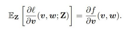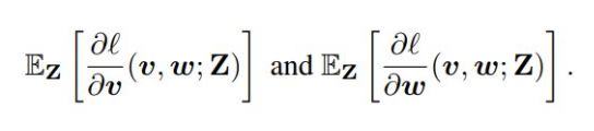 注意这只是用 g_µ(v^t, w^t; Z) 替换了时间 t 的真实梯度 (∂l / ∂w)(v, w; Z),其中的 t 是指时间步骤(或迭代)。