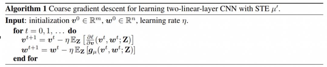 然后,将这个粗粒梯度插入到标准梯度下降更新规则中,就得到了算法 1 所示的梯度下降算法。