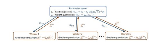 图 1:使用数据并行化的分布式权重和梯度量化