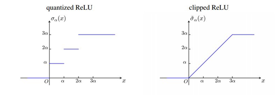 图 2:一个四级(2 位)量化的截断式 ReLU σ_α(x) 和对应的非量化版本。α 是量化级别。