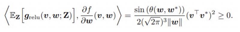 这在后面会用到,因为这被用于描述两个带有高斯项的向量的一个积的期望。arccos(⋅) 中的参数是 w 和 w* 的内积除以 ||w|| ||w*||,这是 w 和 w* 之间的余弦角。这两个向量越近,这个角就越小。