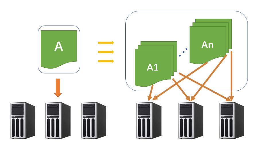 这相当于我把这14267条数据给打散了,放到所有机器上去各自执行一点,就像上面图中展示的那样,而且是没有规律的打散。所以我们只要知道分了多少片以及每台机器被分到的片数集合,即可完成这个分片功能。