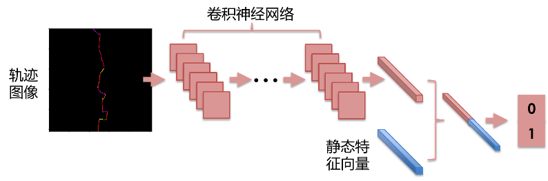 将卷积神经网络学习到的特征向量以及该一维特征向量合并,最终通过全连接层完成轨迹分类。最终卷积神经网络选择ResNet50结构。