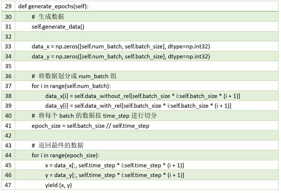 4. 我们定义“generate_epochs”方法处理生成的数据: