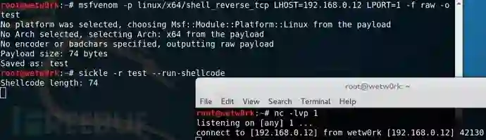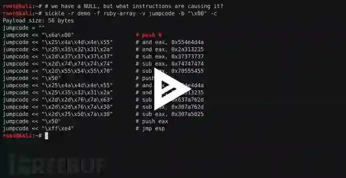 如果你不在NASM中编译你的shellcode,我已经添加了一个“objdump2shellcode”的功能。为了便于访问,我更喜欢将Sickle添加到/usr/bin/目录,但是如果使用Black Arch Linux Sickle则已被预安装。(以前称为objdump2shellcode):