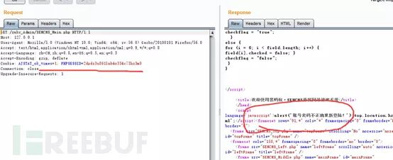 这里我们对后台主界面直接进行请求,直接请求会显示账号密码错误。