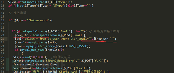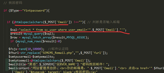 这个功能对应的文件为web_mail.php这个文件,看一下代码这个漏洞是如何出现的