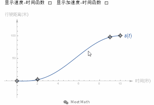 距离 - 时间函数的导数在 0 秒时等于 0 的真正含义是指在第 0 秒附近车速的最佳近似是均速 0 m/s .