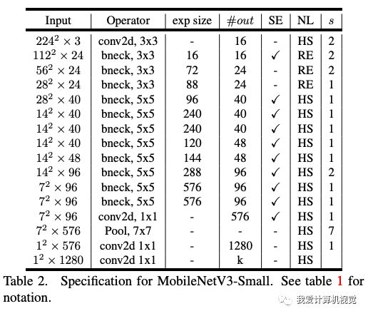 使用上述搜索机制和网络改进,最终谷歌得到的模型是这样(分别是MobileNetV3-Large和MobileNetV3-Small):