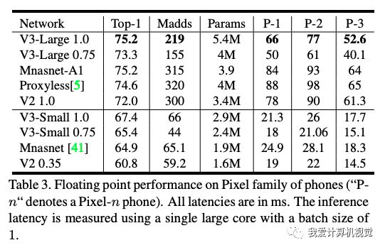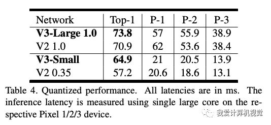 V3-Large取得了最高的精度,V3-Small 取得了V2近似的精度,速度却快很多。