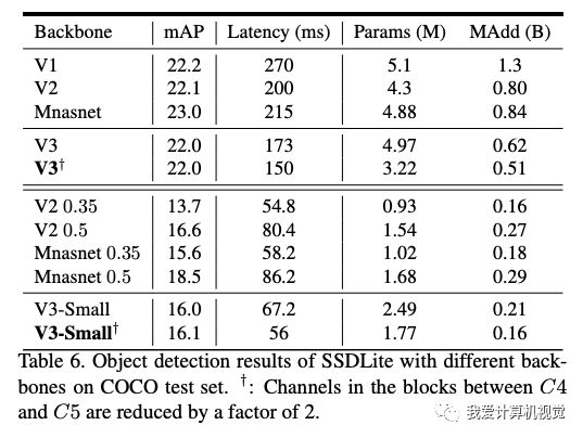 这是使用其构筑的SSDLite目标检测算法在MS COCO数据集上的比较结果: