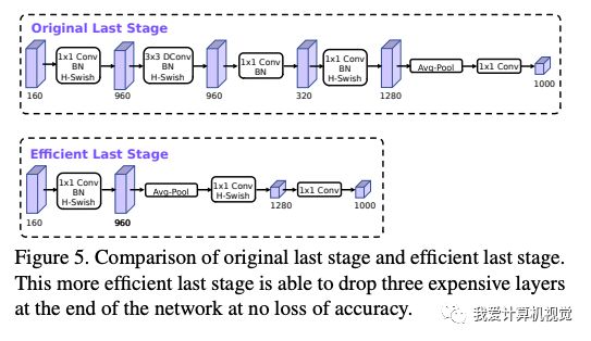 作者们发现MobileNetV2 网络端部最后阶段的计算量很大,重新设计了这一部分,如下图: