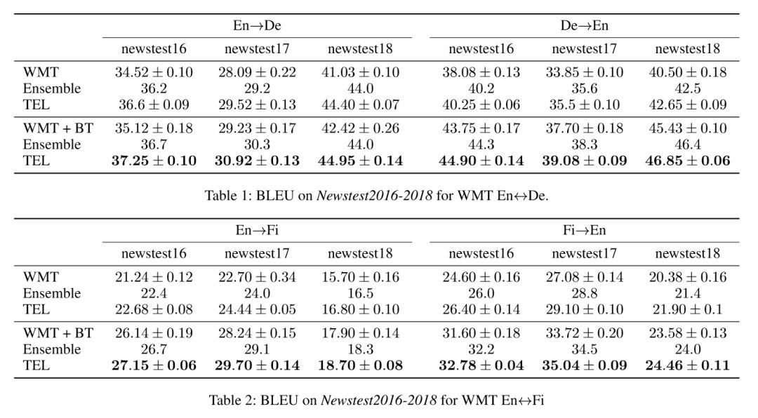 图13: TEL 在 WMT 英语-德语翻译和英语-芬兰语翻译上的实验结果