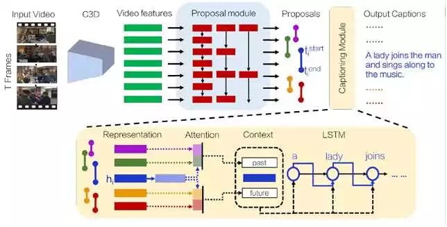 我感觉最大的贡献是提出了这个dense video caption 的数据集(或者说task)吧,算法只是做一个baseline而已,(数据集在ActivityNet上加上了caption 的标注,ActivityNet是当前最火的行为识别/检测challenge的视频数据集)。