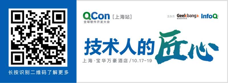 更多关于精彩技术专题请关注 QCon 全球软件开发大会,QCon 上海站 9 折优惠报名最后一周,2017 年 09 月 17 日前,立减 680 元,团购报名更多优惠~点击【阅读原文】跟技术大咖零距离。欲购票或咨询问题可联系购票经理 Hanna ,电话:15110019061,微信:qcon-0410。
