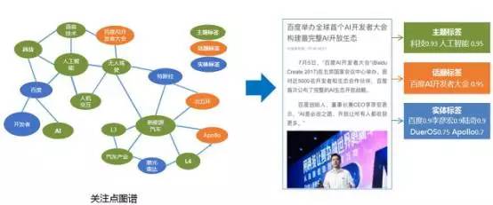 我们看一篇文章、一本书,这时候不仅仅是理解其中每一句话,而是对整篇文章有一个理解,就是篇章的理解。篇章的理解,可以把整个篇章打上主题标签,打上各种实体标签,而这些对计算机来讲就是理解了这篇文章。在应用时,为了不同的应用,标签会有不同的形式,如用在资讯流里,打上这些标签以后,就可以匹配用户的兴趣,从而推荐给用户一篇他可能感兴趣的文章。