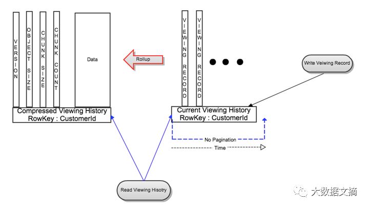 当从LiveVH中读取观看历史记录时,如果记录数量超过可配置的阈值,那么最近的观看记录就被汇总一次,压缩并通过后台任务存储在CompressedVH中。然后使用行键(行关键字):CustomerId将数据存储在新行中。新的汇总是版本化的,写入后会再次检查查数据的一致性。只有在验证与新版本数据一致后,旧版本的数据才会被删除。为简单起见,在汇总过程中没有加锁,Cassandra负责解决极少的重复写入操作(即最后一个写入操作获胜)。