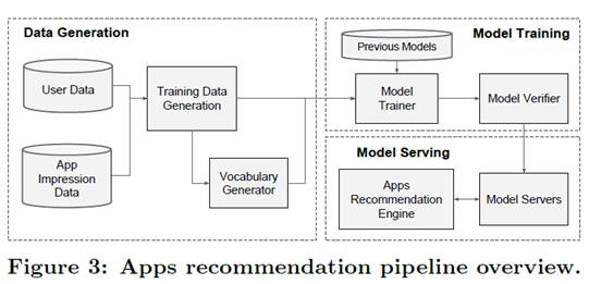 该Apps推荐系统主要包括数据生成, 模型训练, 模型服务三部分: