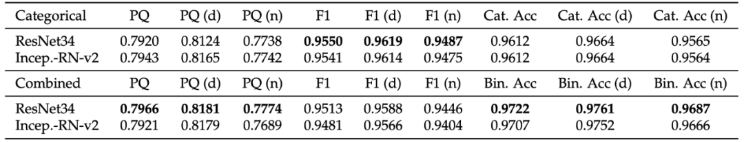 表 3:类别分割和组合分割中对提取椭圆的检测结果。