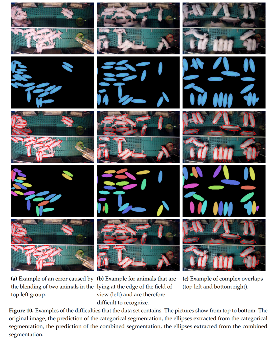 自动识别系统的使用可以大大简化对猪的行为的研究,尤其是基于计算机视觉的系统。其优势在于,它们可以对目标进行有效的状态评估,同时也不会影响动物的正常行为。近年来,这一方向的研究已经引入了深度学习的方法,并表现出不错的效果。传统意义上的「目标」和「关键点」检测器已被用于检测单个动物。虽然效果良好,但是边界框以及稀疏关键点无法追踪动物的轮廓,从而会导致丢失许多有效信息。