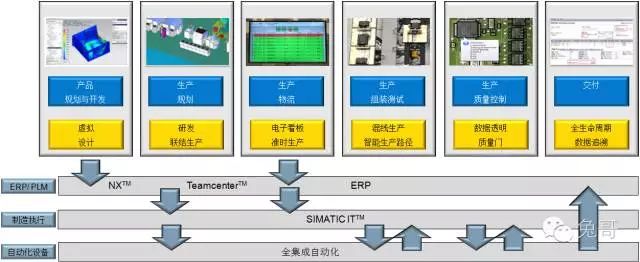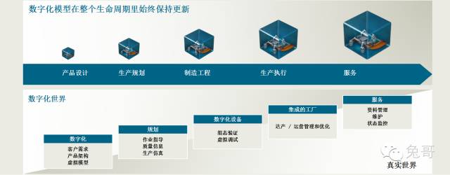 说的神乎其神,其实数字化工厂就是提供了一张底板纸,一个底层数据库,然后把原来的一个个系统,研发、生产、制造、服务什么的都插进去,构成一幅拼图,也就是所谓的“数字化双胞胎工厂”。