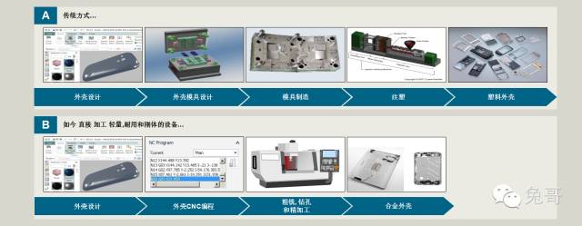 外壳设计完了以后直接生成CNC数控机床程序,CNC程序直接灌注到加工机床,加工机床直接会做出来外壳,节省了步骤,提高了灵活性,缩短了产品上市时间,保证了产品质量,这就是数字化生产方式的好处。