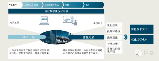 西门子在流程工业的数字化方案主要是两点,一体化工程和一体化运维。