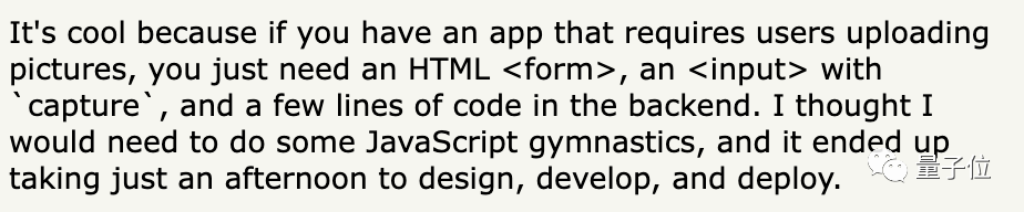 他利用HTML的capture属性,只需设置几个input参数,再加上几行代码搞定了。