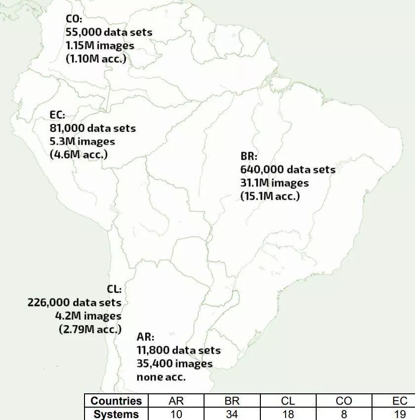 在南美,巴西 的数据泄露“遥遥领先”,有 64 万数据集,3110 万个医学图像,34 个泄露的服务器。