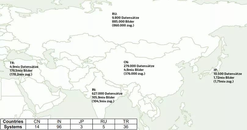 在亚洲,数量最多的开放式机器是在 印度,但是 土耳其 泄露的数据记录(490 万)和医学放射图像(490 万)确是处于领先地位。