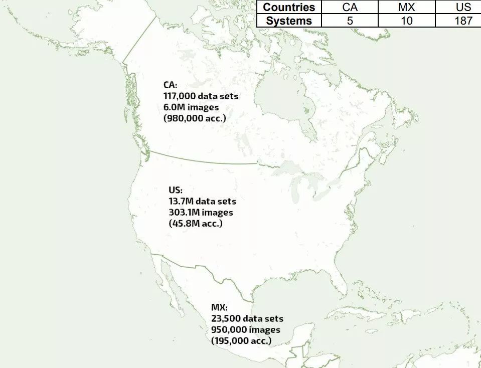 在北美,数量最多未受保护的 PACS 系统是在 美国,同时它也是数据集暴露最多的国家,有 1370 万数据集,超过 3 亿张医学图像,暴露的机器系统是 187。