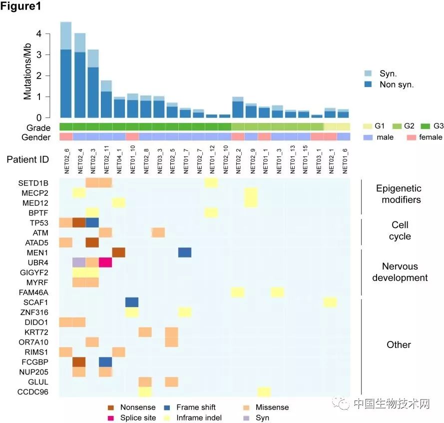 神经内分泌肿瘤(Neuroendocrine tumors, NET)是起源于肽能神经元和神经内分泌细胞的异质性肿瘤。NETs全身均能发生,而发生在肝脏的原发神经内分泌肿瘤十分罕见,约占NETs的0.3%。本研究首次构建了肝脏原发神经内分泌肿瘤的突变谱,使得对其肿瘤生物学的有了全方位认识,并提出了针对它的潜在的诊断标志物和药物靶标。