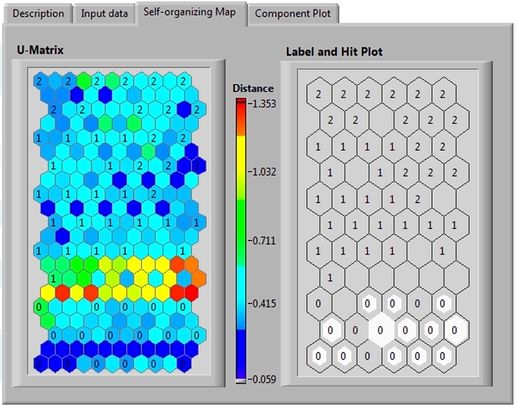 在实际应用中,通常采用Hit map,将测试数据放到训练好的U-matrix中,找到Hit Point所在位置,从而确定故障诊断的分类。