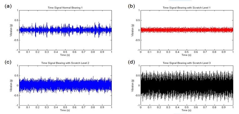 轴承作为典型的旋转类设备,一般通过振动信号进行故障诊断。如下图所示,图a是采集到的多种模式的振动信号,可能由有多种故障耦合在一起,无法直观地判断其故障。下面通过自组织映射神经网络(SOM)的方法进行故障诊断。