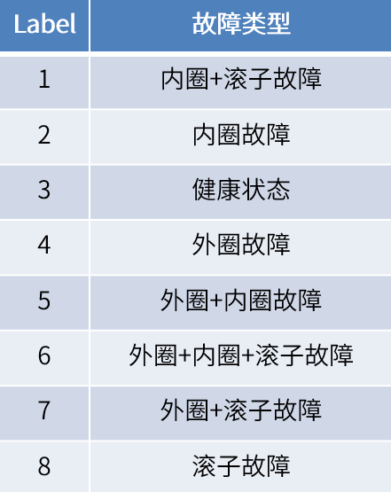 准备数据集,确定类标签(如下图所示,共八种故障类型)