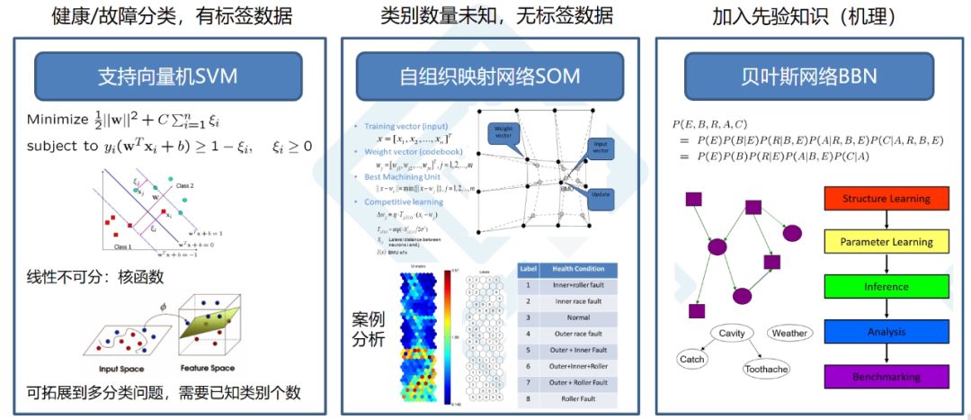 以上两者均是单纯从数据驱动的角度得到模型,如果要加入先验知识(机理),则采用贝叶斯网络,可以将每种特征和故障类型之间的关联关系,通过机理给固化下来。
