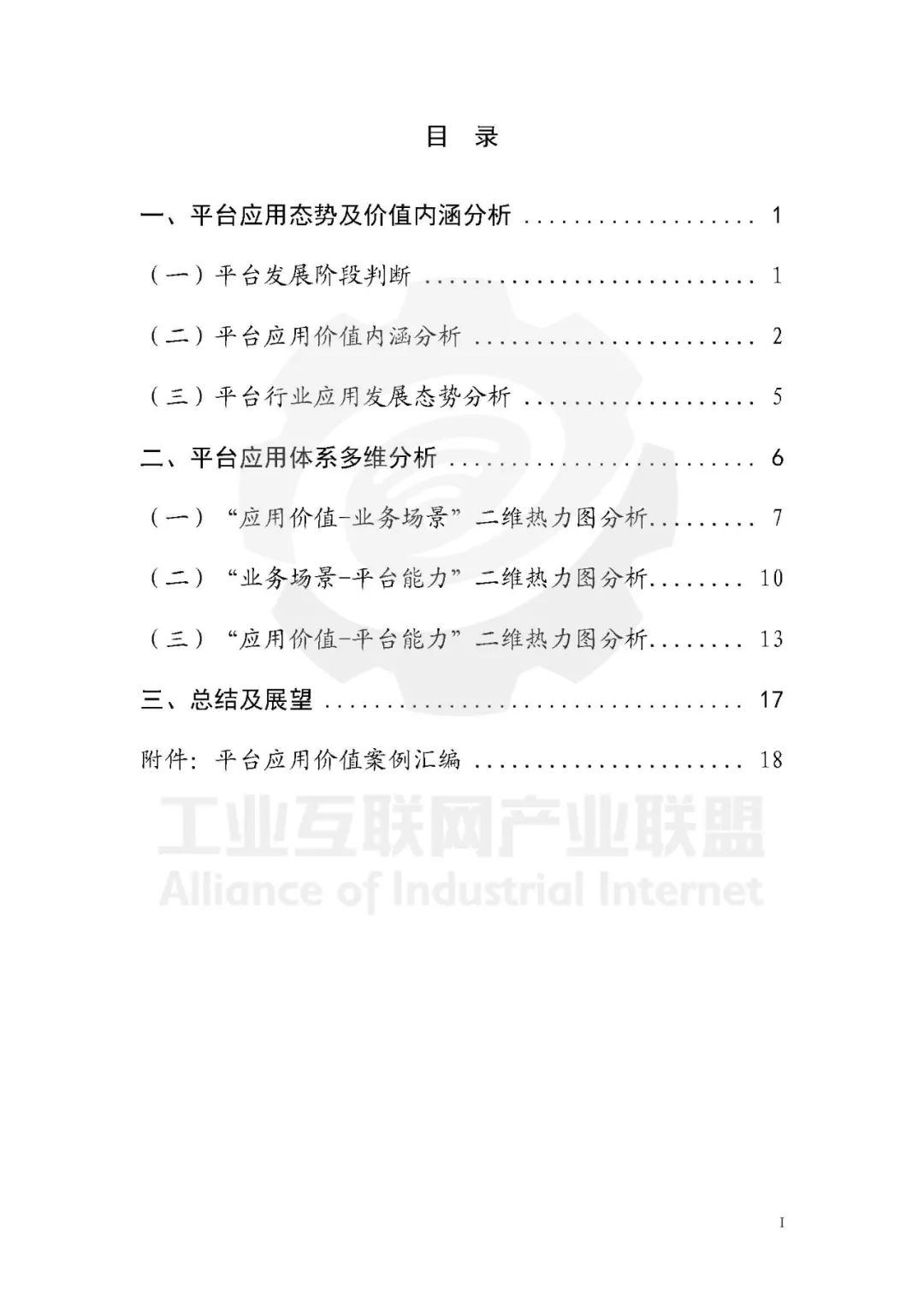 《白皮书:平台价值》共分为三大部分,第一部分为平台应用态势及价值内涵分析,该部分对平台发展阶段进行了判断,并详细阐述了平台应用价值体系;第二部分为平台应用体系多维分析,通过国内外平台赋能案例梳理得到“应用价值-业务场景”、“业务场景-平台能力”、“应用价值-平台能力”二维热力图,并结合热力图对平台应用场景、价值、平台能力之间的复合关系进行了详细分析;第三部分为总结及展望,对平台未来应用价值、赋能场景、提供能力进行了展望。