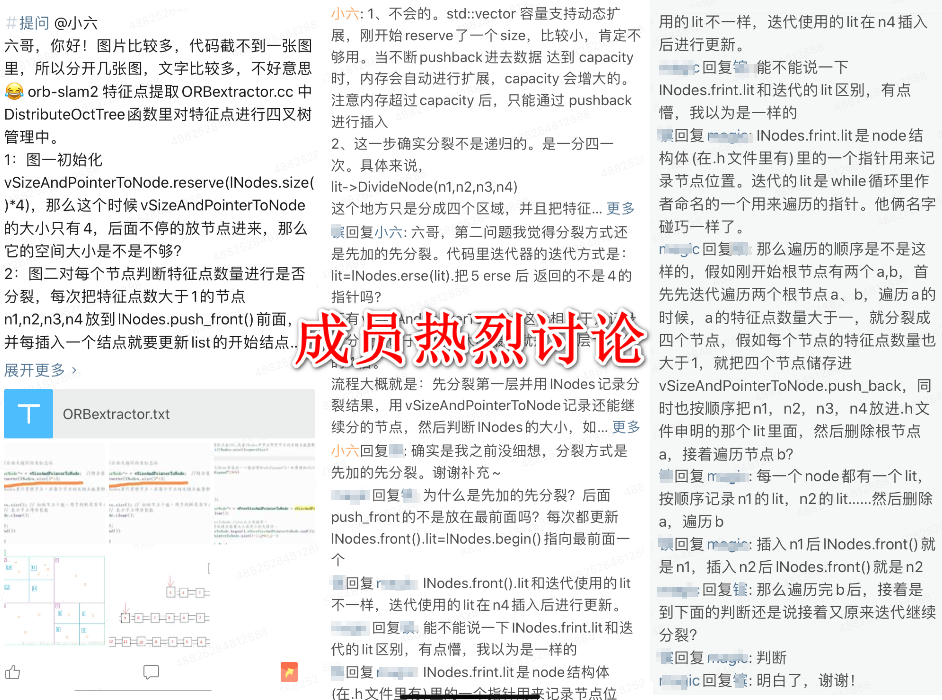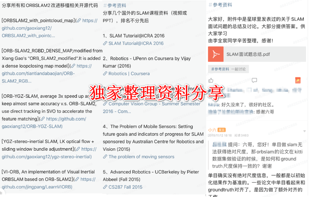 该星球已经创立600天,有1150+小伙伴加入学习,每天都有思维的碰撞,星球已经累计1500条优质主题,是少有以SLAM学习为主题的高质量知识星球。主要有以下几个亮点: