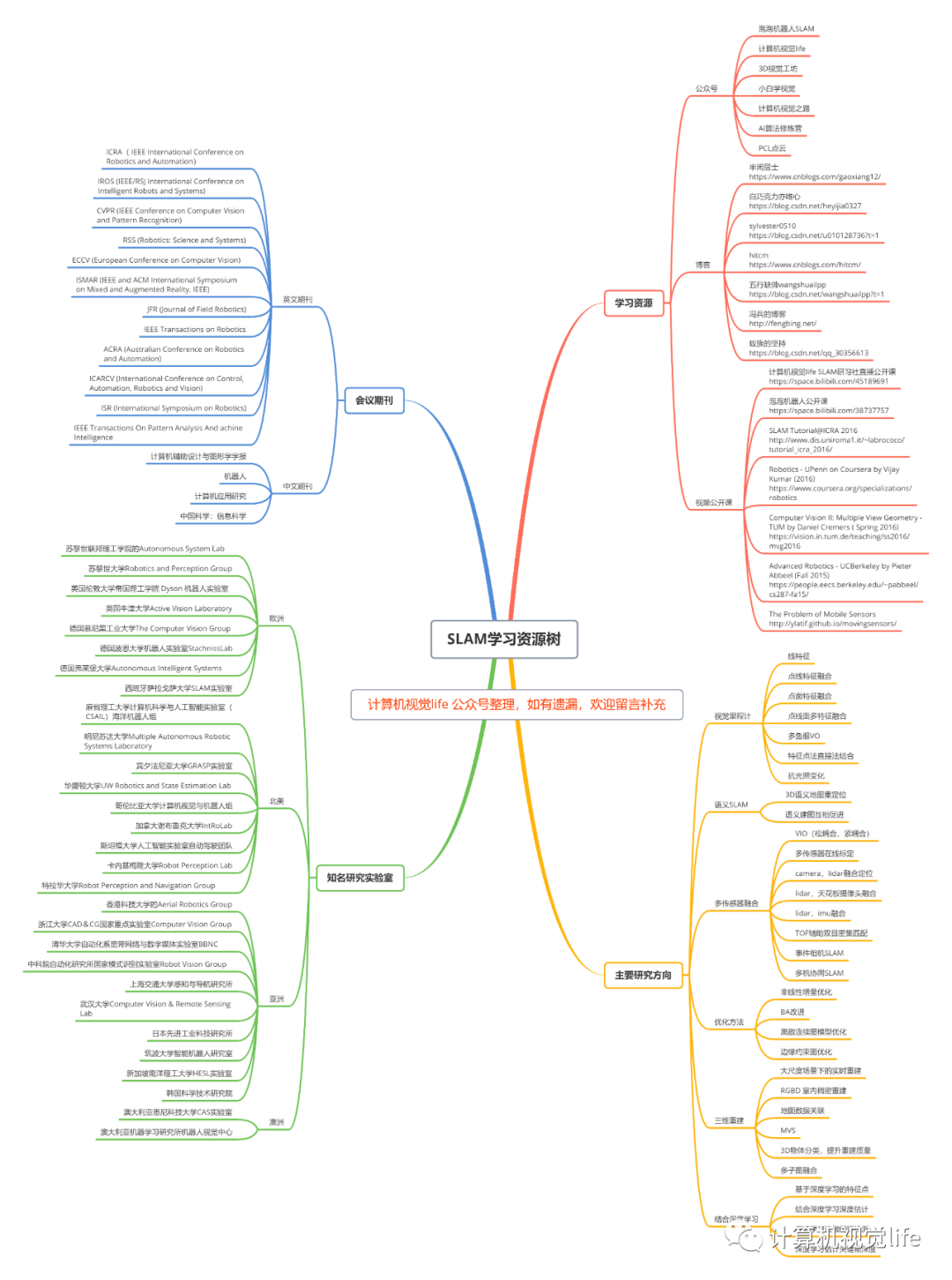 计算机视觉life总结了SLAM学习资源树(点击看大图)