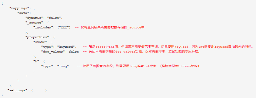 2)尽量使用keyword替代一些long或者int之类的,term查询总比range查询好 。