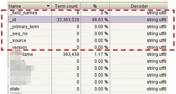 通过Luke工具查看ES的Lucene文件如下,主要增加了_id和_source字段: