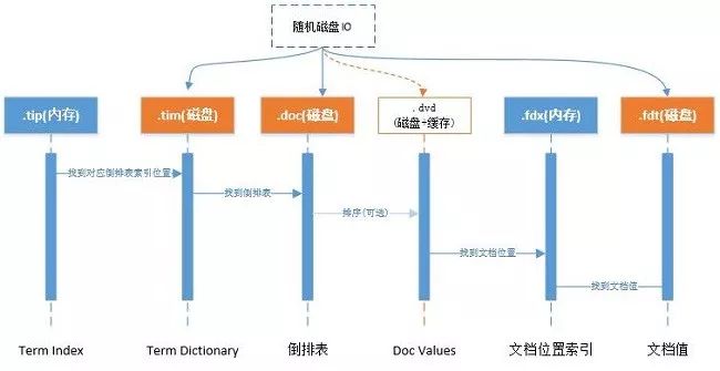 Lucene随机三次磁盘读取比较耗时。其中.fdt文件保存数据值损耗空间大,.tim和.doc则需要SSD存储提高随机读写性能。