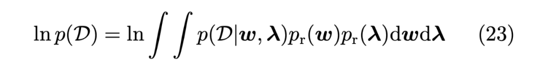 值进行积分,按照 Bishop 的《Pattern Recognition and Machine Learning》的定义,这种积分是贝叶斯方法的核心,在深度学习模型上应用贝叶斯方法就统称为贝叶斯深度学习。我们对公式(2)分母部分进行归一化积分,有