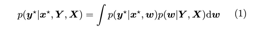 过程是和模型结构相关的,这也启发了一系列将高斯过程与贝叶斯深度学习相结合的研究,一种思路就是利用上述权重空间的高斯过程,对基函数插值系数使用贝叶斯估计从而为模型结构的不确定性建模,公式(11)可表示如下
