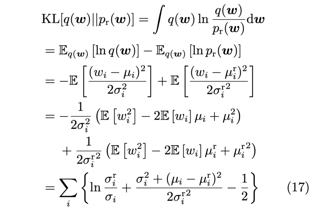 并且相互独立,根据高斯分布均值和二阶矩的性质 ,即可完成最后一步推导。至此,我们已推导出误差函数项的形式,利用 梯度下降和反向传播算法,就可以完成大规模参数贝叶斯神经网络的训练了,为了稀疏模型我们可以