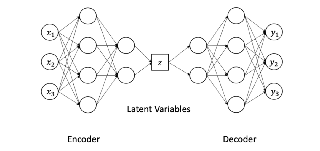 变分自编码器本质上也是贝叶斯深度学习,只不过这次是对隐变量(Latent Variables)进行不确定性建模,也就是将神经网络中的隐藏层输出视作随机变量。传统自编码器是一种由编码器和解码器组成的用于特征提取或数据降维的模型。如下图所示左边是编码器,右边是解码器,通过自编码器将输