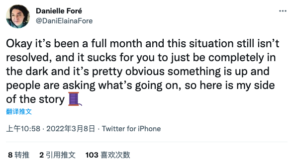 此外,Daniel Foré 还在 Twitter 中提到(当前 Daniel Foré 删除了这部分 Twitter 内容,不过也有人将她发表的内容保存了下来):