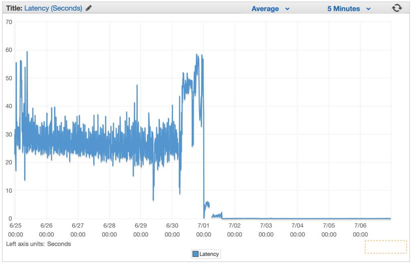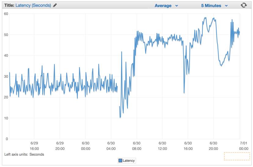 我们只是简单地回避这个问题,最终导致系统的死亡。在我们部署了这个有缺陷的版本之后,我们的延迟率以不变的速率持续增长。