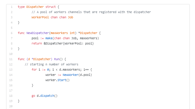 在网站服务器初始化过程中,我们创建一个Dispatcher,调用Run()去创建一个作业者池,开始侦听出现在JobQueue的作业。
